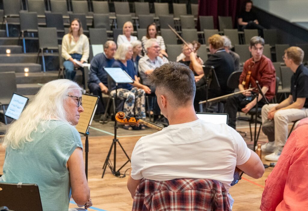 Das neugierige und enthusiastische Publikum, bekam die Gelegenheit, Fragen zum Konzertbetrieb zu stellen sowie eine Orchesterprobe mit Music Director Daniel Hope und Komponist Richard Dubugnon an vorderster Front mitten im Orchester mitzuerleben und dabei zu sein, wenn ein neues Werk entsteht.